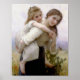 Vintage artwork titled, "Not Too Much to Carry" (1895) by William-Adolphe Bouguereau depicts two girls, likely sisters, in a meadow. The older girl carries the younger one piggy-back style. Posters are available in various sizes, however, this image may not fit on all sizes. You may also choose the paper finish that you would like for your poster.