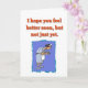 Not Yet is a humor get well greeting card meant to give a chuckle to recovering patients and brighten their day. Not Yet is Steamy Raimon original concept and cartoon art.