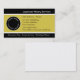 Notary business cards with modern design that includes an image of a notary medallion emblem, gold, black, and white background combination. Change the text and personalize it in a way that makes it work for your business. Designed for a notary, wedding officiant, and legal document preparation services.
