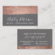 An elegant modern, stylish notary business card with elegant modern simple hand lettering style typography in white on a faux rose gold brushstroke and grey graphite cement trendy and elegant background. all text is customizable, add your social media.