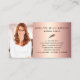 Present your best self to your clients. Black, fancy handwritten script typography with feather pen and pink rose gold glitter drips overlay a faux metallic copper ombre background. On the back, your custom photo on the left side and modern sans serif typography overlaying a faux metallic copper ombre background on the right. Personalize with your full name and business info on the front. Fill in the back side with the photo of your choice and your phone numbers, address, email, website, and other information. Makes a chic, professional, and stylish statement wherever you go.