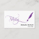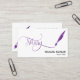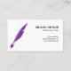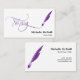 notary feather pen loan signing turquoise Business Card with purple feather pen