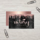 Present your best self to your clients. Light pink, fancy handwritten script typography with feather pen and pink rose gold glitter drips overlay a faux metallic black damask pattern background. Personalize with your full name and business info on the front. Fill in the back side with your phone numbers, address, email, website, and other information. Makes a chic, professional, and stylish statement wherever you go.