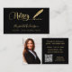 An elegant and glamorous business card on a black background decorated with a faux gold signature signing pen. Elegant hand lettered style script. Personalize and add Your name, text, profile photo, contact info and your own QR code to your website address.
