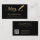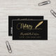 An elegant business card on a black background and a faux gold signature signing pen. Elegant hand lettered style script. Personalize and add Your name, title, contact info and your own QR code to your website address.
