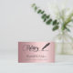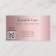 An elegant and glamorous business card on a blush rose gold faux metallic looking background and a black signature signing pen. Elegant hand lettered style script. Personalize and add Your name, title, contact info and your own QR code to your website address.