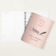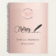 A chic rose gold, blush background, decorated with a feather pen. Personalize and add your business logo and a name and year(s). Black text: Notary