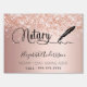 Rose gold faux metallic looking background decorated with confetti and a black signature signing pen. Elegant hand lettered style script. Personalize and add Your name, text, contact information