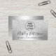 An elegant modern, stylish notary business card with elegant modern simple hand lettering style typography in white on a faux silver glitter ombre metallic foil. all text is customizable, add your social media. Add or remove your logo.