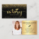 Present your best self to your clients. Faux gold foil, fancy handwritten script typography with feather pen and gold glitter overlay a dramatic, black background. On the back, your custom photo on the left side and modern sans serif typography overlaying a faux gold ombre foil background on the right. Personalize with your full name and business info on the front. Fill in the back side with the photo of your choice and your phone numbers, address, email, website, and other information. Makes a chic, professional, and stylish statement wherever you go.