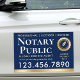 Promote your business on trips and during events with this professional vehicle magnet. A stylish design featuring a feather quill pen within a seal-shaped symbol. Personalize the template with your service information, website, and telephone number. The notary symbol can also be replaced with a company logo or accreditation symbol. A classic blend of traditional and contemporary styles, creating an elegant and friendly aesthetic, with fully customizable text to fit your business brand. Perfect for a Notary Public, Loan Signing Agent, Certified Notary Trust Delivery Agent (CNTDA), Mobile Notary, Apostille or other legal professional. Printed colors: navy dark blue, white and gold color elements. Shop the online collection for more popular product ideas and supplies, designed for notaries!