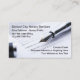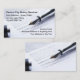 Modern business cards for a Notary Public created in a clever design with a signing document graphic and fancy pen in the background and editable style you can customize online.
