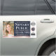 Promote your business on trips and during events with this professional vehicle magnet. A stylish design featuring a feather quill pen within a seal-shaped symbol. Personalize the template with a profile photo, name, service information, telephone number and availability. Add a company logo or accreditations — the notary symbol can also be replaced. A classic blend of traditional and contemporary styles, creating an elegant and friendly aesthetic, with fully customizable text to fit your business brand. Perfect for a Notary Public, Loan Signing Agent, Certified Notary Trust Delivery Agent (CNTDA), Mobile Notary, Apostille or other legal professional. Printed colors: dark Midnight Blue (blue-black), white, and pink rose gold color elements. Shop the online collection for more popular product ideas and supplies, designed for notaries!