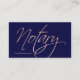 An elegant script typography ,modern, stylish notary business card with stylish script hand lettering style typography in faux rose gold foil on a simple customizable navy blue background. If you need any customization, don't hesitate in contacting me