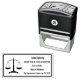 Professional notary stamp with black scales of justice symbol and easy personalizable text.