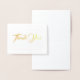 This small size thank you note card is shown in a basic white card stock paper with a lovely gold foil print design.