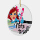 Lightweight, smooth, pure white ornament with nice sheen. Perfect size to be seen from across the room ... and to attract closer inspection! Price was great for ordering enough for the whole family! Clear, bold black design just as requested. Matches the order exactly. Just so nice!