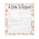 A Note to School Notepad, Student Excuse Pad, School Excuse Pad, A Note to the Teacher Pad, School Notes, School Notepad, Absence Note This fill in the blank notepad will make life much easier by saving you time! Teachers love these easy to read notes! This notepad can be used for multiple children since you can fill in the blanks to suit your needs. A must have for all parents of school-aged children! Several patterns to choose from! *********************ABOUT ME********************* I am a single mom and a middle school teacher. I appreciate your purchase as it enables me to continue my hobby of providing fun products for all who are interested!