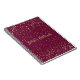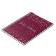 Notebook shown with a graphic of petite stars in golden on a plum-wine background with the phrase " Bride's Notebook". Customize this item and change the name to yours or take off the name and buy as is. Golden and Plum Wine colorings.