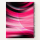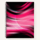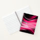 This notebook is shown in a regular shape with college rule pages in a textured art print in colors of black and pink.