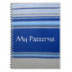 Crochet pattern of dark and light blue, with gray and white accent stripes. Text in white reads "My Patterns" - may be edited for your use.