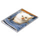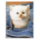Notebook shown with a photo print of a cute kitten in the blue jeans pocket. Customize this item or buy as is. Stock Image