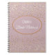 Notebook shown with a graphic of golden colored petite stars in on a light dusty rose-blush pink background with the texts of " Olivia's" and "Bride Notebook" encircled by an oval with borders of coordinating colors. Customize this item and change the name to yours or take off the name and buy as is. White, golden and dusty rose pink colorings.