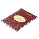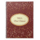 This notebook shown in Burgundy with golden petite stars, an oval in Ivory with coordinating borders in Merlot and Marigold. Burgundy text. Customize this item.
