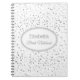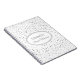 This notebook is created in white with petite silver-gray colored stars all over the front behind an oval in white with coordinating borders of silver-gray color. Your personalized name in center of oval along with "Bride Notebook" for you to customize. Coordinates beautifully with the wedding guestbook to match.