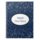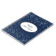 Petite stars in silver-gray grace the cover of this custom name bride's notebook. Shown in deep sapphire blue with a white oval and coordinating border colors of black and powder blue slate along with fun and fanciful text of your personalized name in center and the phrase "Bride Notebook". Customize this item.