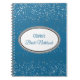Notebook shown with a graphic of petite stars in gray on a periwinkle background with the phrase " Bride's Notebook" inside an oval shape with coordinating borders of gray and black. Customize this item and change the name to yours or take off the name, change the star colors in filter, background color or buy as is. Gray, White, Cerulean and Black.