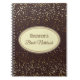 Notebook shown with a graphic of petite stars in golden on a Bordeaux background with the phrase " Bride's Notebook" inside an oval shape with coordinating borders of neutral brown and taupe. Customize this item and change the name to yours or take off the name, change the star colors in filter, background color or buy as is. Golden, Ivory, Bordeaux and neutral colorings.