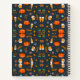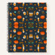 Notebook covers with a playful, colorful pattern of orange pumpkins, popcorn, soda, and 3D glasses on a dark background, conveying a fun, cinematic theme.