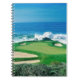 Notebook is shown with a photo print of a beautiful golf course at ocean side.
