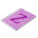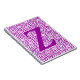 Personalize with a large solid colored letter in front of a pattern of concentric hexagons replicated across the cover. Default color for letter and background fonts is purple.