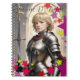 A notebook with a picture of Jeanne D'Arque. (The image was created with AI)
