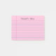 Orchid pink notepad with a notebook paper aesthetic with blue lines. Add your name at the top in a pencil-grey hand-writing font.