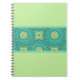This notebook is shown with a lovely lime green and teal colors moroccan print design.