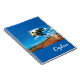 Notebook shown with a photo print of a dirt bike rider and a custom name. Customize this item and change the name to yours or take off the name and buy as is. Stock Image