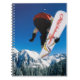 Notebook shown with a photo print of a winter scene and snowboarder. Customize this item or buy as is. Stock Image