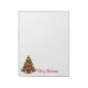 Notepad is shown in white with a festive holiday Christmas tree print.
