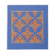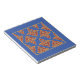 A smart notepad or jotter, with a traditional 'fleur de lys' pattern in rich Burgundy red and gold on a midnight blue background and a wide blue border.