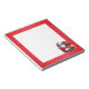 Notepad shown with a fun faux red glitter border edges and a cute Santa Clause in the bottom corner. White space in center for you to jot down your messages.
