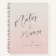 Soft pink gradient watercolor background, with dove gray modern script calligraphy "Notes and Musings" to inspire your creative ideas and thoughts, personalized with your name on the front and your monogram with name on the back. Add your own information by following the "Personalize this template" link.