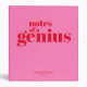 NewParkLane - Add color to your life, with this modern personalized 3 ring binder, with funny quote 'Notes of a Genius' in bold red typography against a hot pink background.