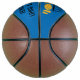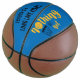 Full size personalized basketball in blue and yellow. The design features the basketball quote "nothing but net", illustrated with a basketball and net. You can add your name, jersey number and team or custom text, which is printed in black uppercase typography. It has a color palette of blue, black and yellow. Please browse our store for more basketball gifts.