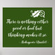 It's all a matter of perspective, as the brooding prince Hamlet finds, when Rosenkranz and Guildenstern find delight in Denmark and he sees only gloom. Cheer up, Hammy! Here's a gorgeous green design with leaf flourish and handwriting script text. You can even personalize it and change the quote to a different one if you want. Green is a color of confidence, balance and creativity. The opposite of red (Mars), in relates to the female warrior. Green corresponds to growth, nurturing, strength, nature and the environment. Green is a color of teachers and innate natural wisdom. Any way this inspiration quote is sure to bring a smile.