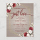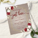 Beautiful and inexpensive burgundy floral geometric on beige rustic wood wedding invitations. Easy to personalize with your details. PLEASE NOTE: The envelopes are NOT INCLUDE; affordable A7 envelopes are available to purchase separately.