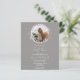 A simple chic floral faux foil wreath gray wedding invitation. Easy to personalize with your details. Geometric photo wedding invitation, modern boho wedding invitation editable, customizable, calligraphy handwritten font, simple, elegant.