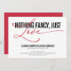 Plain white envelopes are included with paper invitations and will come to fit the invitation size you select. If you don’t need the envelopes, you may choose to not receive them by selecting the dropdown below "Envelopes" and choosing "None." If you’d like to have a design on your envelopes, you can browse all of these available envelopes to find the design that complements your Nothing Fancy Just Love Casual Wedding Invitation.